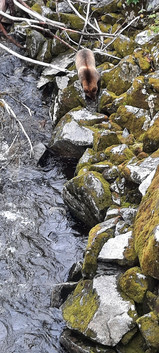 The bears were only feet away, Di describing it as "Enfin's length" so 40 feet away with absolutely no meaningful physical separation whatsoever. If the bears wanted to change their diet, it'd take all but a few seconds to get a red wearing, slow running Di. It seems salmons are just better.